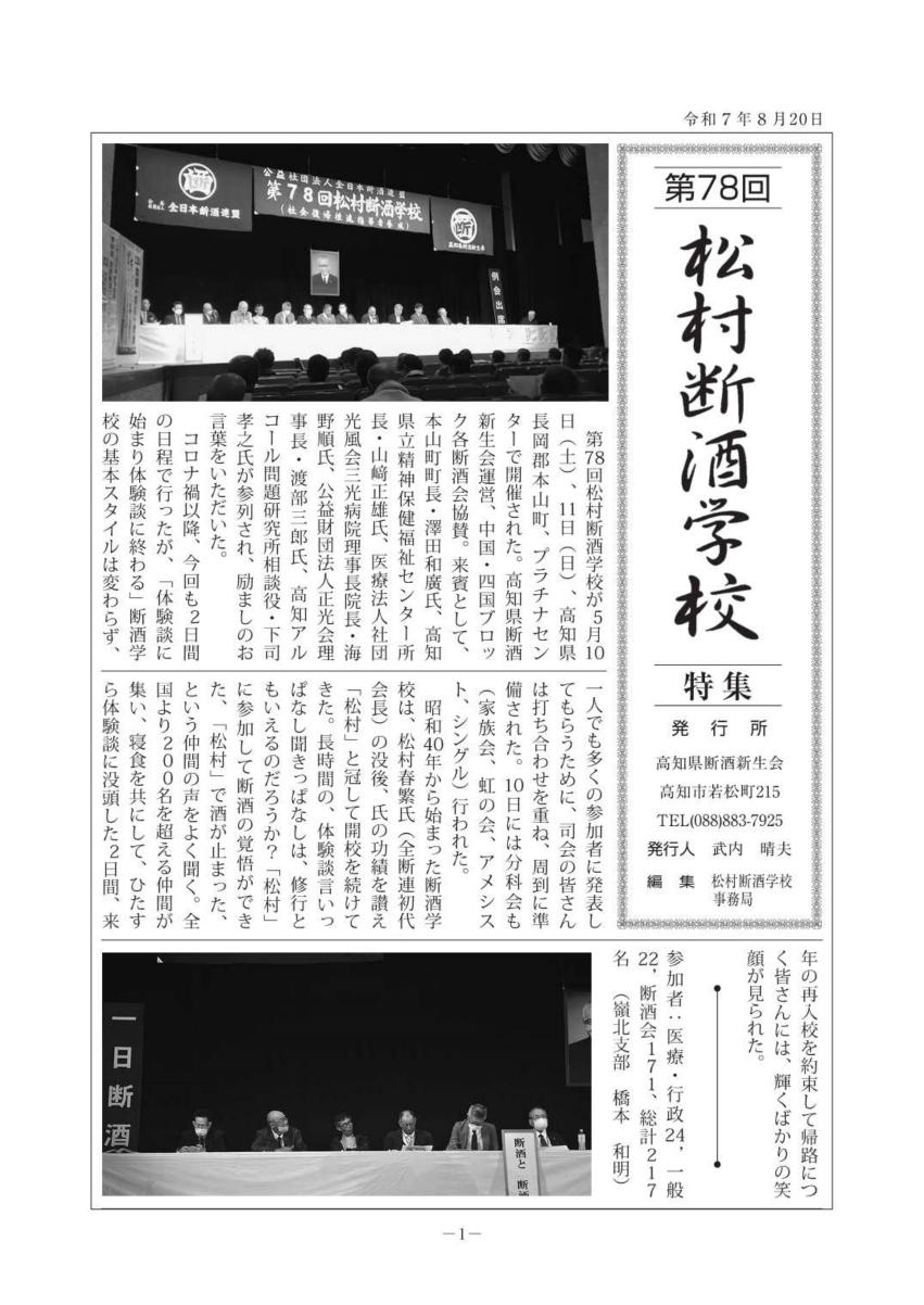 令和7(2025)年8月号 第78回松村断酒学校特集