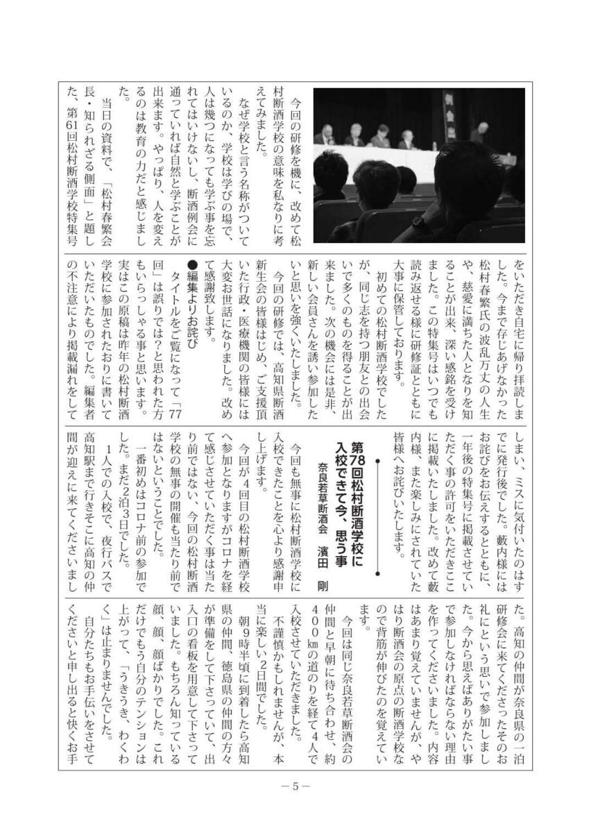 令和5(2023)年8月号 第76回松村断酒学校特集