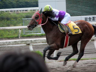 レースは前評判の高かった別府真衣騎手騎乗のセンターカノン号が大逃げを決め、宮川実騎手以来のデビュー戦での初勝利を飾りました。長期休養明け2戦目のタクマセンプーに騎乗した森井美香騎手は6着(6頭出走)でした。