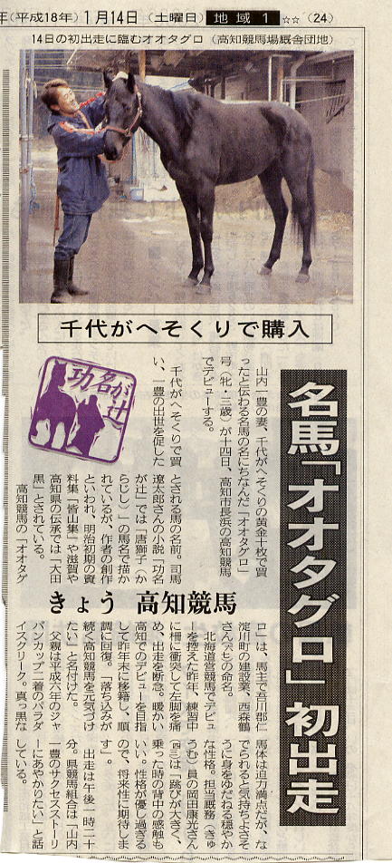 オオタグロは山内一豊の妻千代の内助の功で買った名馬オオタグロにちなんで命名されました。
