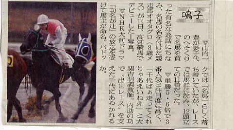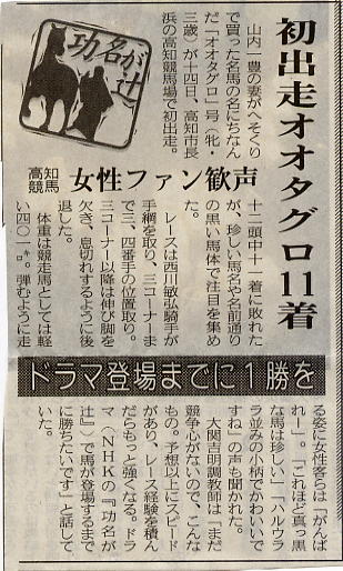 デビューして数戦を消化した頃、「功名が辻」のドラマが放送されている内に勝てるろうか?と、心配されたこともありましたが、これで一安心です。
