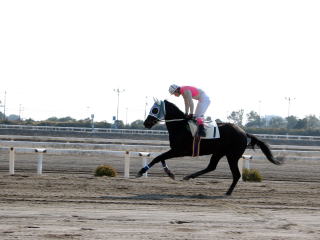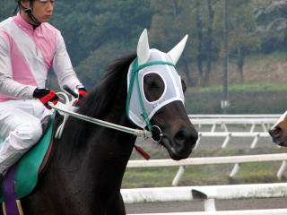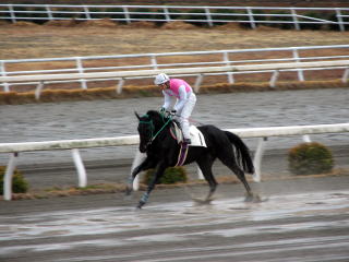 | オオタグロこぼれ話 大関調教師は黒い毛色の馬が大好き。 青鹿毛で真っ黒なオオタグロもきっとかわいがってもらっていることでしょう。(2/05) |
