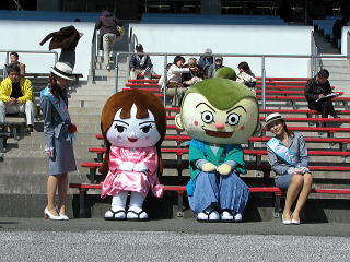 今回は県観光コンベンションビューローからかずとよくん、ちよちゃんとミス高知の二人が応援に来てくれました。