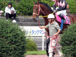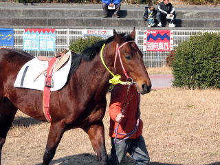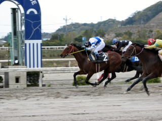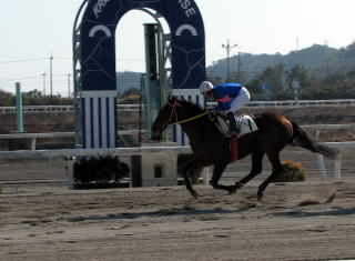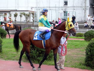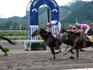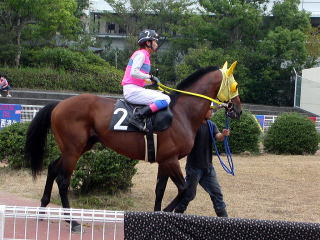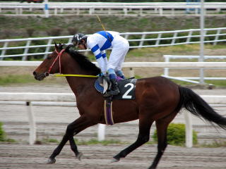 第1レース(800m)。モーニング展望で本命にあげられていたので単勝馬券を買って応援していたが、ハナを叩けず4着。