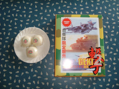 TV番組「トリビアの泉」で紹介され、自衛隊が作った「饅頭」を送りますとのメールが届いた。通称「ゲキマン」というらしいが、何となくイヤラシさが満ちていたので楽しみに待った。ワタクシ「トリビアの泉」なんて低俗番組を見たことがないので、自衛隊の饅頭を取り上げた意味がわからないのが残念であった。結構、有名になっているらしいのですとのコメント。また、また、自衛隊特有の自家発電思惑が・・・。
