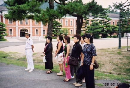 結成して2年にしかならないSPの教育部会(ボンジュール会)の面々は伊勢神宮に勝るとも劣らない、この江田島に息をのむ。初めての自衛隊研修は陸自の北熊本駐屯地であったため、自衛隊といえば陸上の迷彩服というイメージを2年間持ち続けていた熟女たちだ。