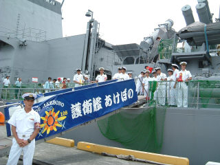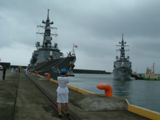 平成15年7月19日、高知新港に護衛艦がやって来た。「さみだれ」「あけぼの」の2隻だった。「五月雨」と言うくらいだから、当然だろうが、激しい雨とともにやって来た。