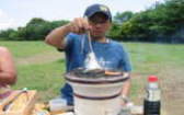 GWも後半、やっと海れたワシは朝イチ皆と合流し、IDビーチへ1ラウンド終了後 おぢぢ氏とも初めてやし!天気もエイし七厘でちょっと一杯やるかえで始まったゲリラ宴会! 買出しすませて七厘に火を入れ、タタキはしなかったがサバ寿司焼くわ、長太郎焼くわ・・・ビールも朝からススムススム。。 |