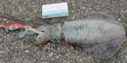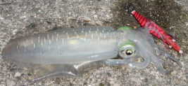 | 昨日、出張から帰ってきて今日は10時から仕事なのだが、潮が気になる・・・とてつもなく気になる・・・夜明けの時間に、ちょうど大潮の満潮なのだ! うぅ〜ん・・・2時間はシャクれる!こりゃ仕事前に、行っちょかんとイカんろー! で!眠い眼をこすりながら、西へ走る、いつものポイントには・・・居る、人が2人も・・・「あぁ〜遅かったかぁ・・・」堤防に行くと、アジを投げているイカ釣師とカマス狙いのおんちゃんが居た、とりあえず「おはようございます!釣れましたか?」と聞いてみるが当たりは無いらしい・・・ 生アジかぁ、エギには辛いなぁと思いつつも、せっかく来たし、バカボンに買ってもらったNewリールも試したいので準備する、今日はPE1.5号に2号のリーダーを付けてみた!カマス釣りのおんちゃんの横で邪魔にならないように投げてみると、これは快適!しゅるるうぅぅぅ〜と気持ちよく飛んで行くし、シャクって巻くときもPEが竿先に絡まない!これはいいぞ!何回か底にもかかったが、PE1.5は強い!藻と一緒に上がってきた、ムフフフ・・・新兵器は正解か! 2投目投げて「あり?何か引っかかった」と思ったが、ドラグの調整できていなくて外れた!Nweリールはオシリの方でドラグの調整が出来るので、シャクリながら調整していたが、うまく出来ていなかった・・・エギを上げて見てみると!何と!イカ様の足!先っちょが、切れてくっついているではないか!!「やまった!逃がいた・・・」しかしイカ様は間違いなく居るということだ! 生アジには、当たりが無いと言っているが、結構行けるかもと思いつつ、シャクリ続ける・・・これが隣のカマス釣りのおんちゃんが話好きで、カマスのようだいを百ばぁ聞いているとこに、ズン!「ありゃ!来た!」リールも3000番にしたので巻くのも軽くて快適♪ イカ様の重さを感じながら、寄せてくると・・・来ちょる来ちょる、新兵器の「落とし玉」で取り込もうとしたら、生アジイカ師のおんちゃんが「どりゃ!これで引っ掛けちゃお」とシャクリのデカイ針で掛けて上げてくれた、感謝である。 カマス釣りのおんちゃんは「こんなが(エギのこと)でイカ釣ったがは初めて見た」と持っていた氷をくれた。 カマス釣りのおんちゃんは「お日様が昇ったらカマスはくわん!」と帰っていった、おんちゃん氷ありがとう! 生アジイカ師もアジ竿の横でエギを投げ始めた・・・話をしていたら、この前ここで1杯逃がしたらしい「アジは生エサやきアジの方に来そうなもんやにね!」と言ったら「イカ釣りは運よ!」と返されてしまった。 ワシのイカ師匠に初めて釣った報告をした時に「イカはツガイでおるもんやき、1杯来たらもう1杯はおる!」と指導を受けていたので、ワシも引き続きシャクっていたら、何だか当たり? らしきもの?っていうかエギを引っぱりような感じがしたので、ゆっくりシャクリながら堤防から下を覗き込んでみると、上から見えているエギの下にイカ様らしき影がユラユラしている! ![]() たぶん・・・ツガイでしょうか、合掌! イカ様がかじった跡! マジかぇ!と思いながらエギをゆっくりシャクって見みると、ガツン!と来た!堤防の真下やのにぐっすりエギを咥え込んできた!ワシは生アジイカ師に「おんちゃん・・・また来た」と、またまた手伝ってもらって堤防まで上げたのである・・・ヒドイ奴や・・・ こうして、仕事前の2時間、生アジイカ師の後に来てイカ様を2杯、手伝わせて上げ、先に帰ってしまうと言う、失礼極まりないイカ様釣り師kaiは、心優しい釣り人達の親切に感謝しながら出勤して行くのであった。 <本日の教訓>朝の挨拶!助け合いのココロ! <本日の出費>遅刻するぅ〜!帰りの高速代 <本日の紛失>生餌にエギは勝てない!と思っていたこと |