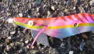 | 今日は朝イチ波のりと言うよりも、初エギングに気合が入っている! 波は、そんなにありそうにないが、ビーチの地形もチェックしときたいのでTに向かって走る。Tはサーフポイントの手前に漁港があって、以前からイカ釣りのポイントでもあるが、堤防に行くのは初めてである。 まず、先に波をチェックしようと思ったが、何と!すでに1人エギを投げているエギンガーを発見!早速「釣れましたか?」と声をかけてみたら・・・無造作にスーパーの袋に入れられた、1キロばぁのがをゲットしていた。 「おぉ!イカおるがやん!」ワシも早速エギをセットして、検索サーチで会得した投げ方で投げてみる! 「まず、こう投げて、底をとってしゃくったらえいがやね」と独り言をいいつつ2投目を投げた瞬間!ブチッと言う異音とともにエギが飛んで行った・・・(・_・) ラインを見てみるとPEとリーダーの継ぎ目から切れている、仕掛けが甘かったか!気を取り直して、新たな仕掛けをくくりつける。 「これも経験、経験」と思いながら、新たな仕掛けでピンクエギを再び投げる! 何回かしゃくっているうちに色んな事に気づいてきた、PEラインは竿先に絡むのだ!腕が悪いせいもあるかもしれないが、とにかくよく絡む。 しゃくった後、どこまでリールを巻けばいいのか?よく分からない、とにかくしゃくってたら、今度は底に引っ掛かったみたいだ。 左右に移動したり、ラインを緩めたりしながら外そうとしたが、なかなか外れない!結局またもやブチッっと切れてしまった・・・(*_*) これはヤバイ・・・エギはあとオレンジの1個しか残ってない、そこでワシは考えた「そうだ仕掛けの作り方が悪いのかもしれない!」そこで今度はPEラインにそのままエギをくくりつけてみた「よし!これなら大丈夫やろう」と・・・ 1投目を投げた瞬間・・・ブチッ・・・オレンジ色の美しい新品のエギが遥か向こうに飛んでいってしまった・・・リールのロックが外れてなかった。 こうして初エギングに、なったような?ならないような?初エギングのあとkaiは波のりもせずに、中村の釣具屋に走ったのは、言うまでもない・・・しかも、その後1個ブチッ <本日の教訓>糸は切れるもの!エギは飛ぶもの! <本日の出費> 中村の釣具屋で1個\220のエギみっけ♪ ・エギ3個 〆て\660也 <本日の紛失>エギ\800×3個 エギ\220×1個 |